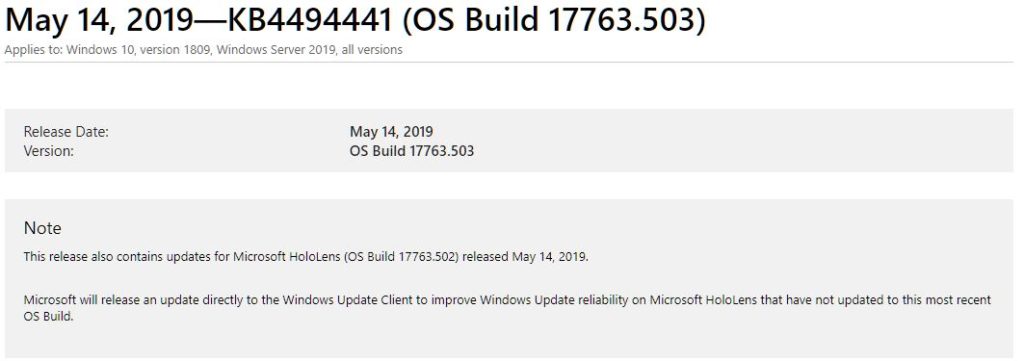 Bisher sind einige Fehler identifiziert, die im Zusammenhang mit dem Windows-10-Update KB4494441 stehen, darunter: